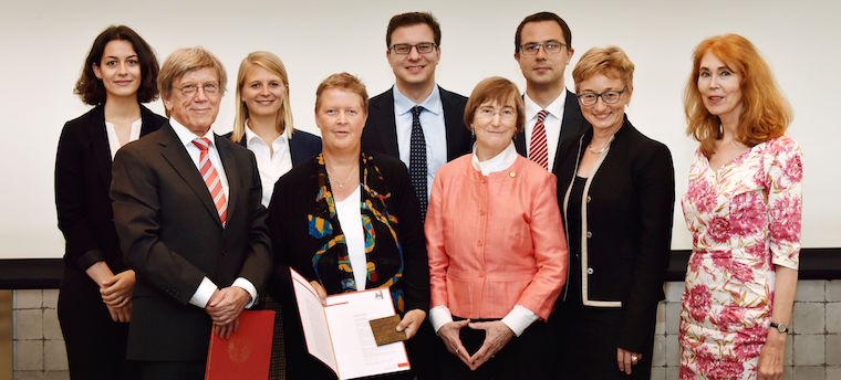 Prof. Dr. Hans D. Jarass, Prof. Dr. Sabine Schlacke (auch im Vorstand des ZIR), Prof. Dr. Susan Grotefeld, Dr. Irene Wiese- von Ofen als Laudatorin, Prof. Dr. Dr. Martina Oldengott (Leiterin der LG NRW DASL) und derzeitige und ehemalige Mitarbeiterinnen und Mitarbeiter des ZIR
