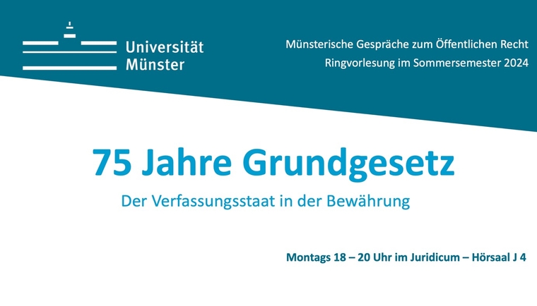 Die Professorinnen und Professoren, die in Münster Verfassungsrecht lehren und zum Verfassungsrecht forschen, wollen in dieser Ringvorlesung eine Zwischenbilanz ziehen: Wie und warum funktioniert das Grundgesetz? Welche Voraussetzungen waren nötig, damit über Jahrzehnte das Leitbild des freiheitlichen Verfassungsstaats tatsächlich die Wirklichkeit der Bundesrepublik bestimmen konnte – und welche Konsequenzen hatte das? Welche Akteure haben unseren Verfassungsstaat maßgeblich bestimmt – wie wurde also aus dem Text von 1949 eine lebendige Verfassungsordnung? Welche Schwachstellen hat das Grundgesetz – in seiner Struktur und in seiner Handhabung? Und kann das Verfassungsrecht zur Orientierung beitragen, wie der Verfassungsstaat mit den Herausforderungen der Gegenwart und Zukunft umgehen soll?