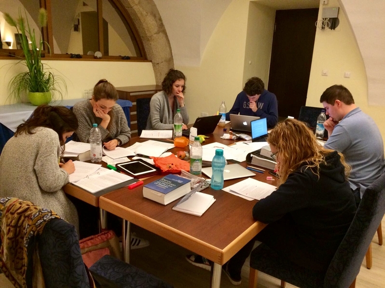 Bereits bevor der Sachverhalt Anfang September 2016 von ILSA veröffentlicht wurde, bezog das diesjährige Jessup Team ein Büro in der AUB, um gemeinsam intensiv über die aufgeworfenen Probleme diskutieren zu können. Aylin Arens, Dietrich Bade, Liam Ehm, Janine Flohr und Sarah Popp wurden dabei von den Coaches Isabel Lischewski und Jana Lohmann (beide sind wissenschaftliche Mitarbeiterinnen am Institut für Öffentliches Recht, einschließlich Völker- und Europarecht sowie empirische Rechtsforschung) inhaltlich und organisatorisch tatkräftig unterstützt und geschult. So konnte ein Team entstehen, das am Ende beide Seiten des Falls vor dem fiktiven IGH der deutschen nationalen Runden fundiert argumentieren konnte.