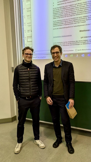 Es war uns ein Vergnügen, Dr. Ernesto Klengel vom Hugo Sinzheimer Institut für Arbeits- und Sozialrecht am 19. November 2024 an der Universität Münster in unserer Reihe „Gastvorträge im Arbeitsrecht“ begrüßen zu können. Sein Vortrag zum Thema „Digitale Arbeitswelt – Zeit für Updates im kollektiven Arbeitsrecht?“ bot eine spannende Perspektive auf die aktuellen Herausforderungen und Entwicklungen in der Arbeitswelt.