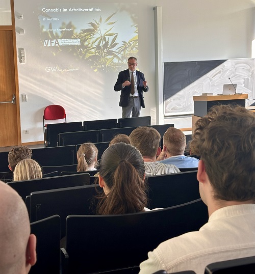 Mit solchen Fragen befasste sich der spannende Vortrag „Cannabis im Arbeitsverhältnis“ am 19.5.2025 von Dr. Markus Kappenhagen, Rechtsanwalt bei Graf von Westphalen. Der Vortrag ist Bestandteil der Reihe „Gastvorträge im Arbeitsrecht“ von Prof. Dr. Friederike Malorny.