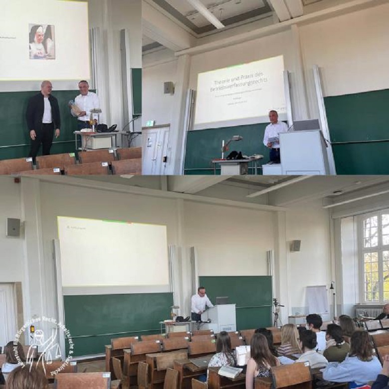 Ralf Rieger war unter anderem Vorsitzender des Gesamtbetriebsrats sowie des Konzernbetriebsrats eines großen Assekuranzunternehmens. Einen Schwerpunkt seines Vortrags legte Herr Rieger auf das Gebot der vertrauensvollen Zusammenarbeit der Betriebspartner. Aus seiner langjährigen Erfahrung konnte er berichten, wie Streitigkeiten eskalieren – am Ende gebe es in diesen Fällen häufig keinen Gewinner, sondern vor allem verbrannte Erde. Der andere Schwerpunkt behandelte den Betriebsrat als Ehrenamt. Ein aktuelles Beispiel ist hier vor allem die Gehaltsentwicklung der freigestellten Betriebsrätinnen. Diese dürfen schließlich weder benachteiligt noch bevorzugt behandelt werden. Dies führt bei der Betrachtung einer hypothetischen Betrachtung der Gehaltsentwicklung zu hoher Rechtsunsicherheit mit dem Risiko einer strafrechtlichen Ahndung des Verstoßes.