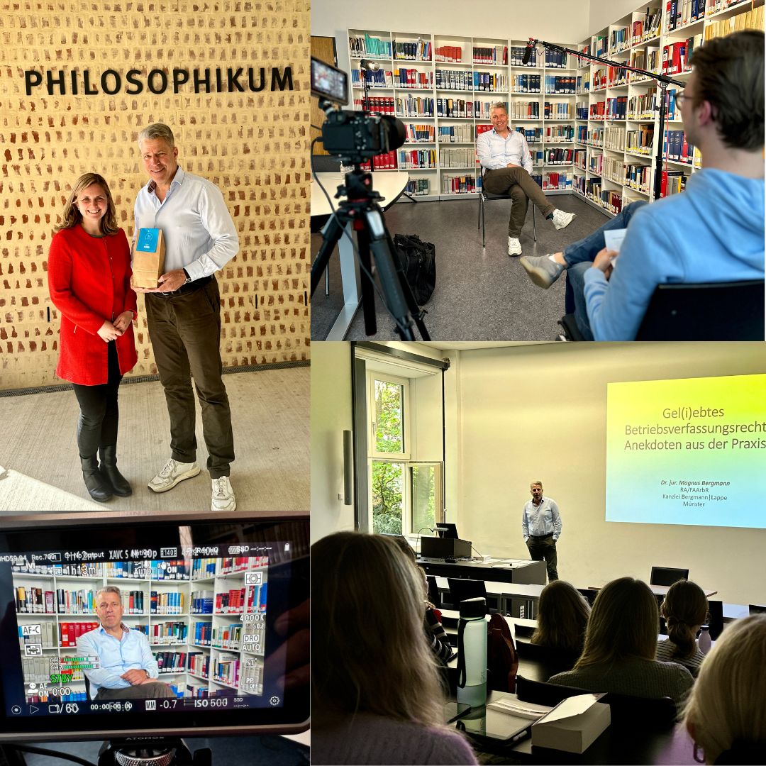 Am 29. April 2024 durften wir Dr. Magnus Bergmann im Anschluss an die Vorlesung Arbeitsrecht III begrüßen. Mit seinen Anekdoten aus der Praxis konnte er die Studierenden in den Bann ziehen.