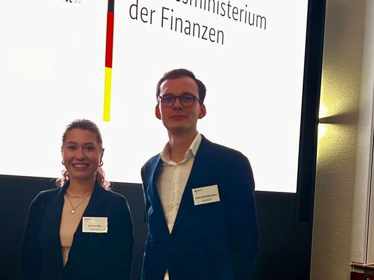 Tabea Neuhaus und Maximilian Deden bei Doktorandenseminar des Bundesministeriums der Finanzen